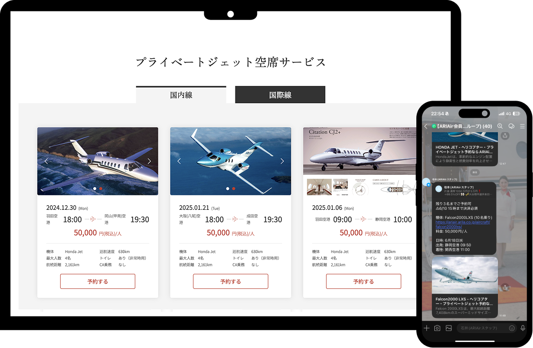 専用LINEや会員サイトで空席情報を常時チェック可能。希望条件に合う便があれば即予約、すぐ移動。