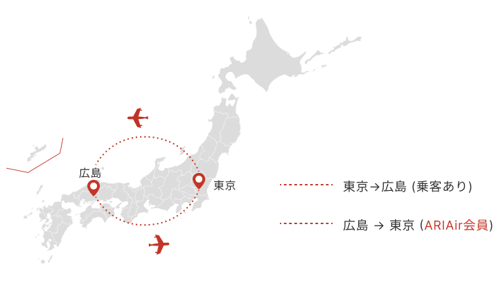 ARIAirはこの“空席の移動区間”を会員に開放することで、航空会社のムダな回送コストを収益化。
