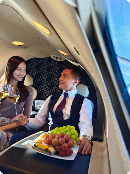 出国・入国審査や手荷物検査も機内で完結。搭乗から離陸まで最短3分、チェックイン不要。